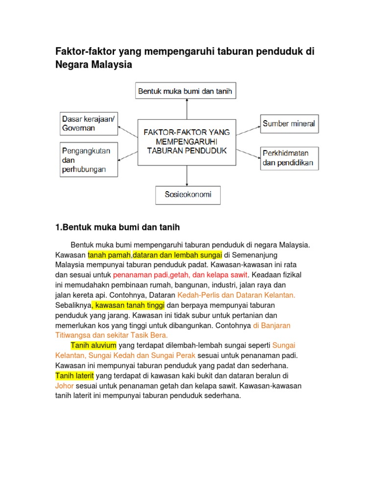 Pengertian kualitas penduduk, indikator, dan faktor yang mempengaruhinya. Faktor sosial mempengaruhi taburan penduduk malaysia. Terdapat dua jenis faktor : Taburan penduduk mengikut garis lintang. Faktor sejarah di mana tamadun manusia bermula seperti dichina, benua kecil india, mesir purba dan eropah.